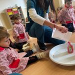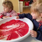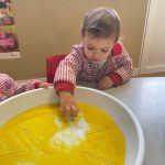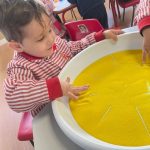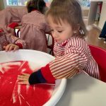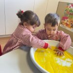 Esta actividad se desarrolla en un entorno seguro y cuidadosamente preparado, donde cada niño y niña puede investigar y expresarse a su ritmo, disfrutando del juego libre y del aprendizaje significativo a través de la experimentación.