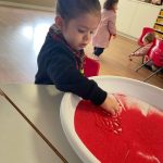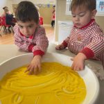 Los niños y niñas han manipulado la arena, experimentando con diferentes texturas, mezclas de colores y formas, lo que favorece la motricidad fina, la concentración y la percepción sensorial. Además, explorar los colores y las combinaciones permite reforzar conceptos como el reconocimiento cromático y la coordinación ojo-mano.