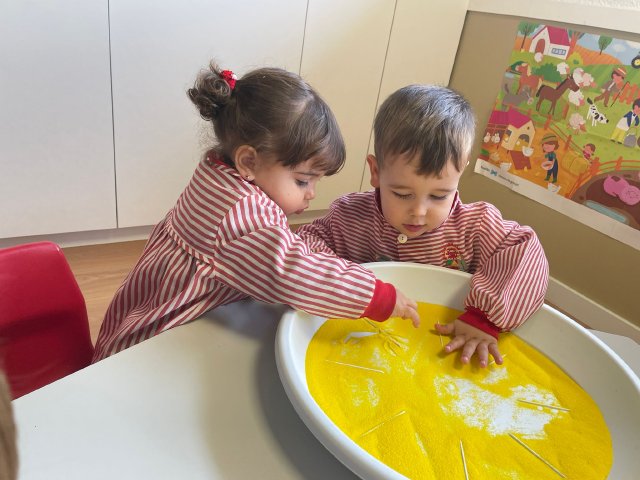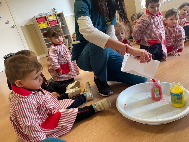 Esta actividad se desarrolla en un entorno seguro y cuidadosamente preparado, donde cada niño y niña puede investigar y expresarse a su ritmo, disfrutando del juego libre y del aprendizaje significativo a través de la experimentación.