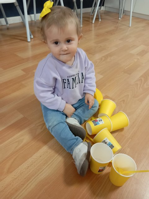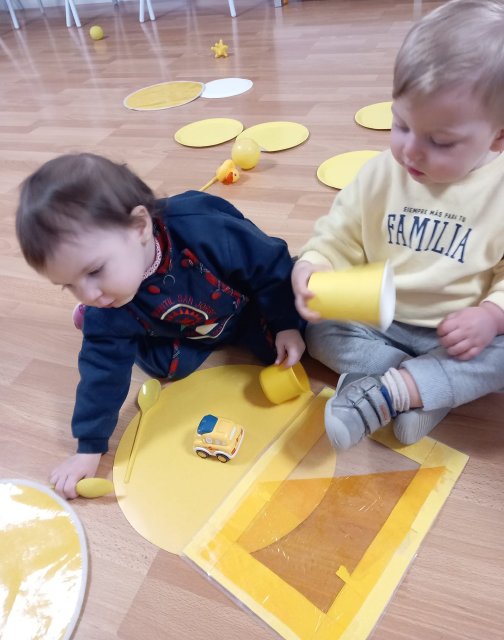 Las familias han participado trayendo objetos de color amarillo desde casa, lo que ha permitido crear un espacio lleno de estímulos cercanos y significativos para el alumnado. Manipular, observar y compartir estos materiales favorece la atención, el lenguaje y la curiosidad, siempre desde una propuesta lúdica y adaptada a su etapa de desarrollo.