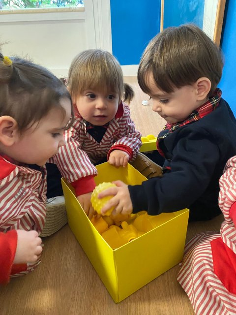 Las familias han participado trayendo objetos de color amarillo desde casa, lo que ha permitido crear un espacio lleno de estímulos cercanos y significativos para el alumnado. Manipular, observar y compartir estos materiales favorece la atención, el lenguaje y la curiosidad, siempre desde una propuesta lúdica y adaptada a su etapa de desarrollo.