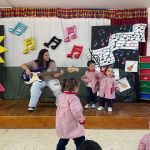 Los peques han disfrutado enormemente viendo a sus familiares tocar, cantar o mostrarles instrumentos de cerca. Sus miradas de asombro, las sonrisas y la emoción que se respiraba en cada sesión nos recordaron la magia de aprender juntos y de sentir la escuela como un espacio común.