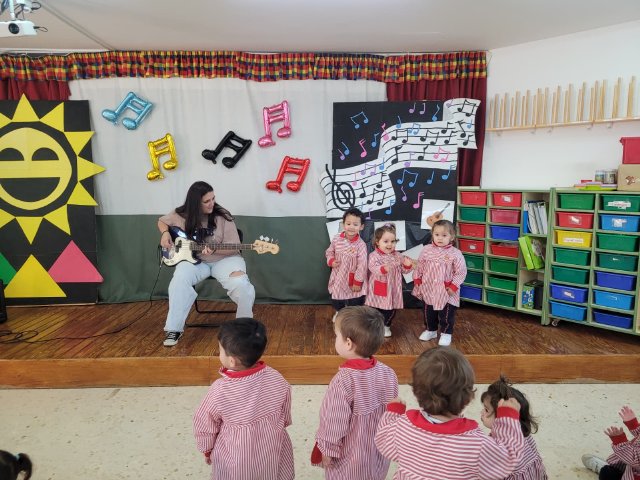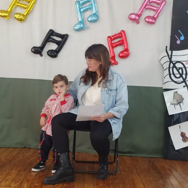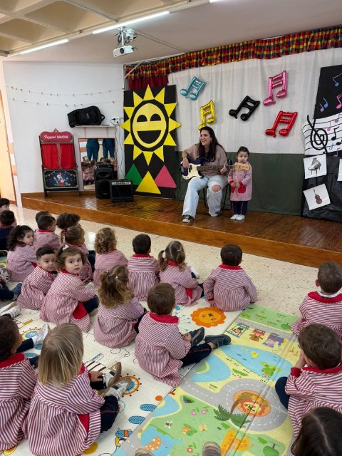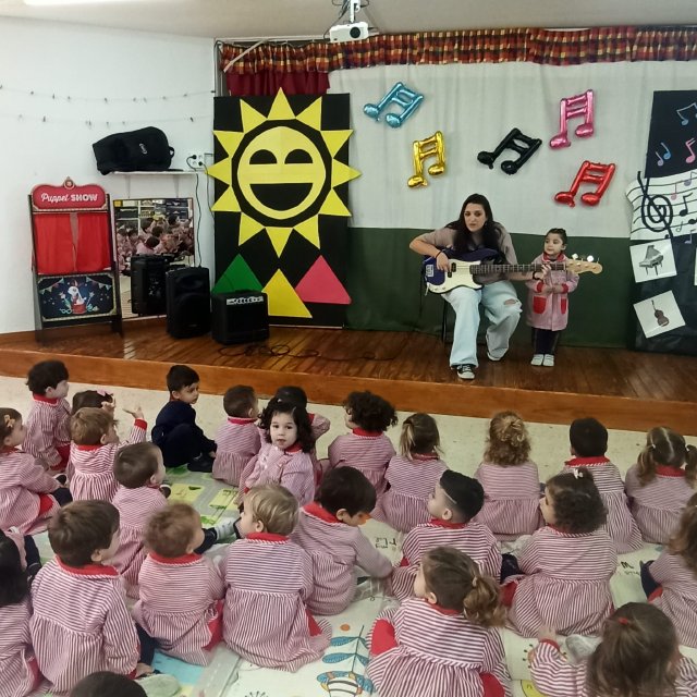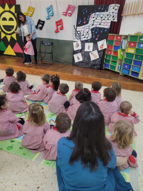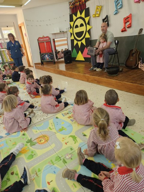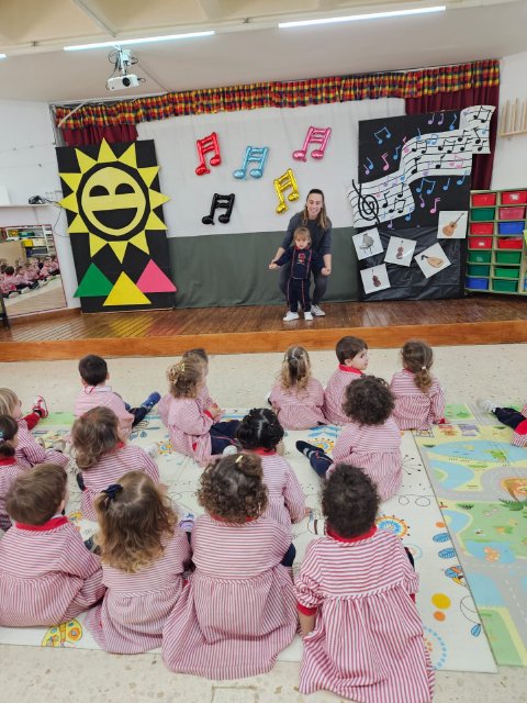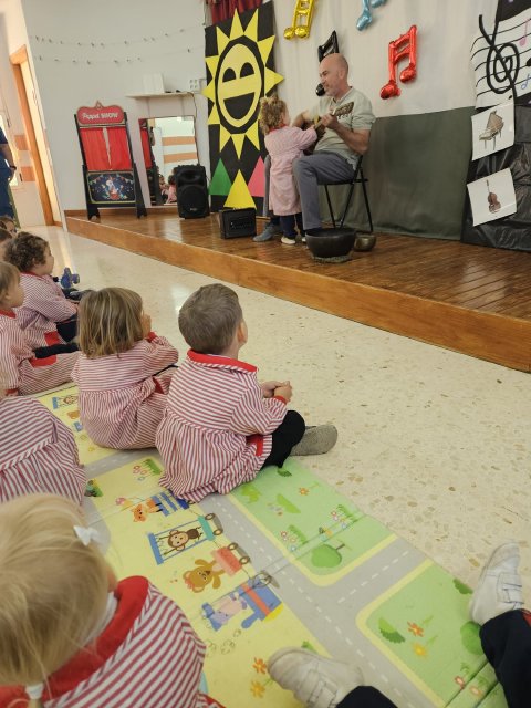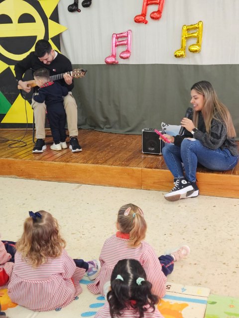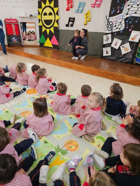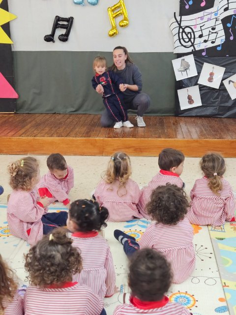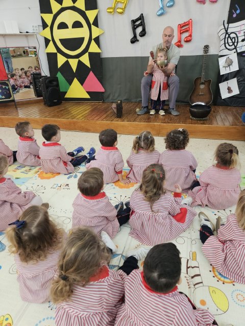 Los peques han disfrutado enormemente viendo a sus familiares tocar, cantar o mostrarles instrumentos de cerca. Sus miradas de asombro, las sonrisas y la emoción que se respiraba en cada sesión nos recordaron la magia de aprender juntos y de sentir la escuela como un espacio común.
