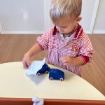 Mientras lavaban sus juguetes favoritos, los peques exploraban el agua, las burbujas y las diferentes texturas, desarrollando su motricidad fina y coordinación. Además, aprendieron el valor de cuidar y mantener limpios los materiales que usamos cada día.