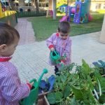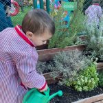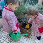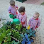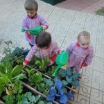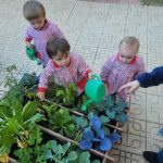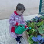 Más tarde salimos al exterior para dedicar un ratito al cuidado de nuestro huerto. Regar, tocar la tierra, observar las plantas y ver cómo crecen les ayuda a comprender procesos naturales sencillos y a desarrollar actitudes de cuidado y respeto hacia la naturaleza. Cada pequeño avance en el huerto es vivido por ellos con ilusión.