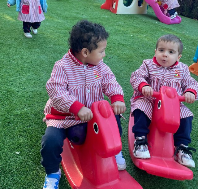 Y para terminar la mañana, disfrutamos de juegos en el jardín, un espacio donde pudieron correr, saltar, deslizarse y compartir momentos de juego libre. El movimiento, el aire fresco y la convivencia hacen que esta parte del día sea especialmente enriquecedora.