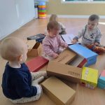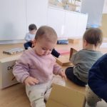 A través de cajas de cartón de distintos tamaños, los bebés han podido explorar libremente, tocar, entrar y salir, esconderse, empujar y descubrir. Para ellos, una caja no es solo una caja: puede convertirse en un refugio, un coche, un escondite o simplemente en un nuevo elemento que despierta su curiosidad.