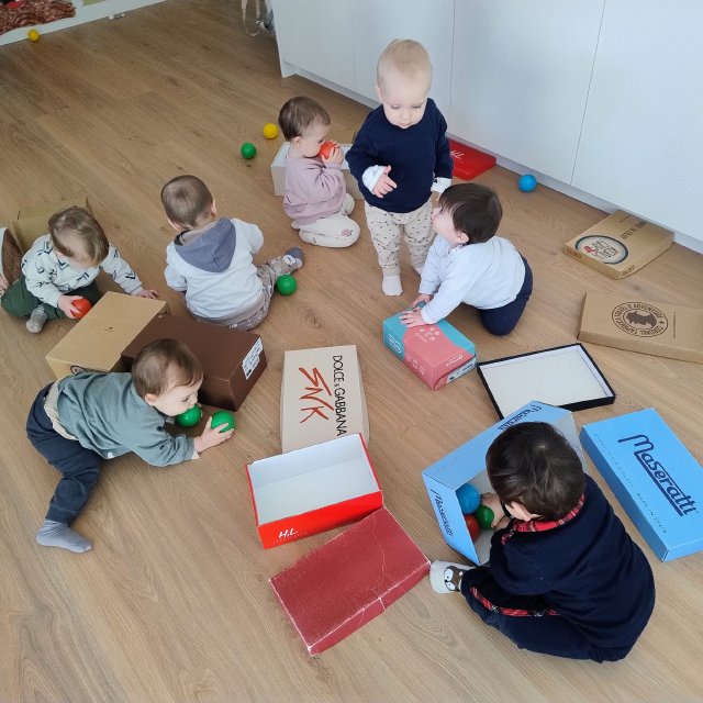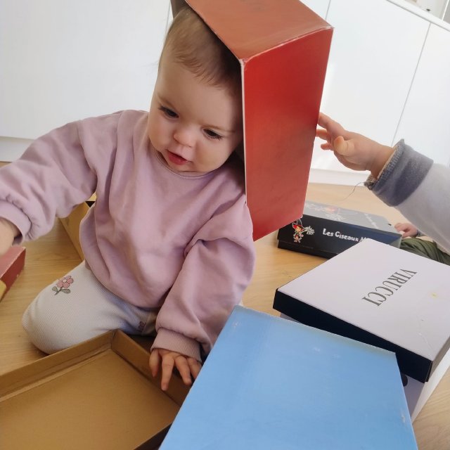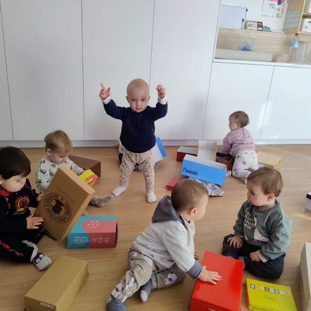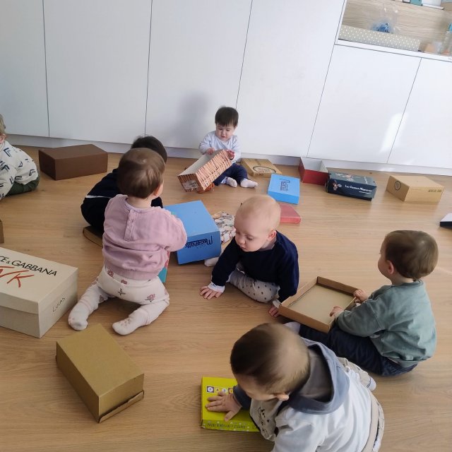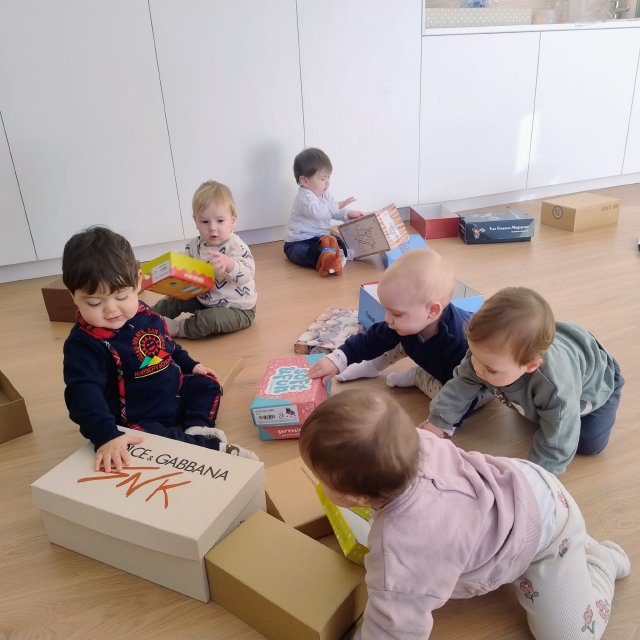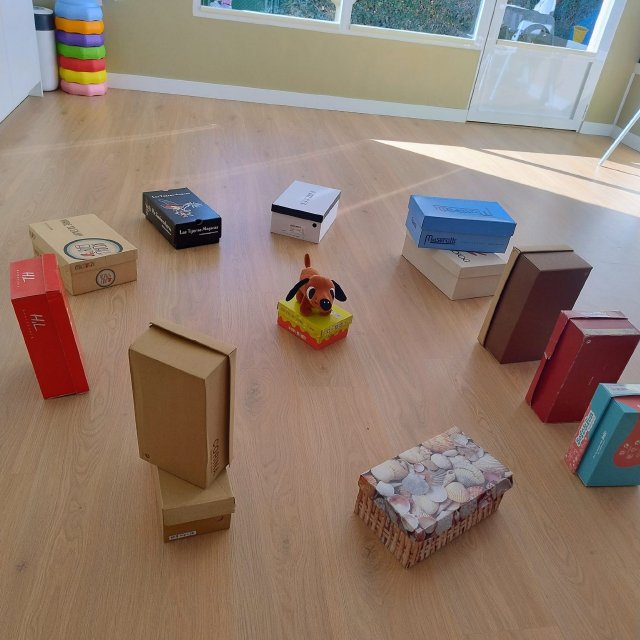 A través de cajas de cartón de distintos tamaños, los bebés han podido explorar libremente, tocar, entrar y salir, esconderse, empujar y descubrir. Para ellos, una caja no es solo una caja: puede convertirse en un refugio, un coche, un escondite o simplemente en un nuevo elemento que despierta su curiosidad.