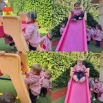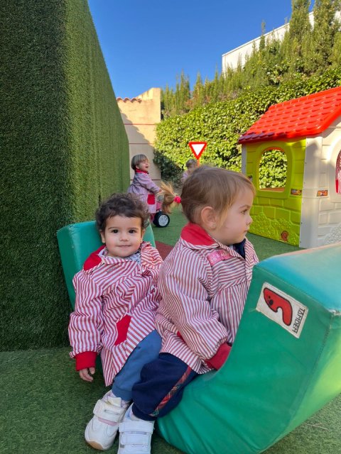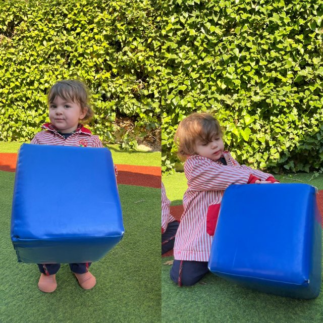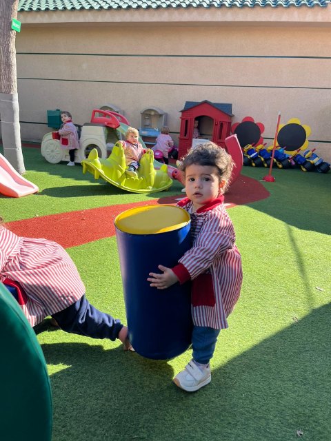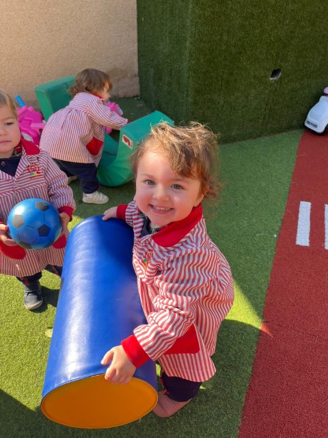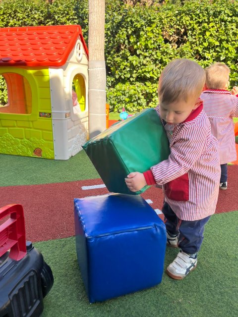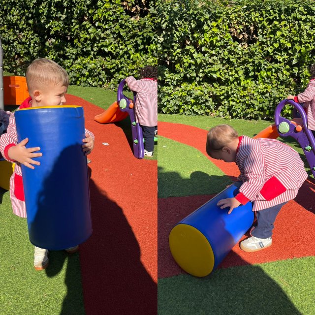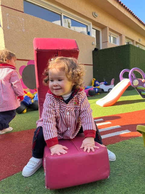 En el jardín, hemos trabajado la psicomotricidad gruesa utilizando material específico que invita a gatear, subir, bajar, empujar y mantener el equilibrio. El espacio al aire libre nos permite movernos libremente, fortalecer el cuerpo y ganar seguridad en cada pequeño logro.