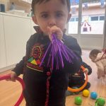 El juego simbólico ha tenido un papel protagonista con los disfraces en el jardín, ofreciendo a los niños y niñas la oportunidad de expresarse libremente, imitar, compartir y disfrutar del movimiento al aire libre. Además, las sesiones con luz negra han llenado el aula de magia, estimulando los sentidos y convirtiendo el aprendizaje en una experiencia sorprendente.