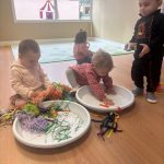 Hemos trabajado el Carnaval a través de murales llenos de color, donde los niños y niñas han podido experimentar con pinturas, texturas y materiales, fomentando la creatividad y la expresión artística. También hemos disfrutado de la mesa de luz, un recurso que despierta la curiosidad y la atención, permitiéndoles explorar colores, formas y contrastes de una manera muy especial.
