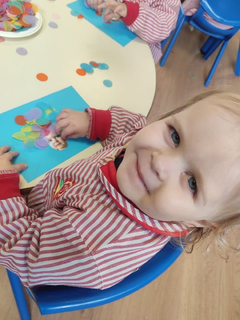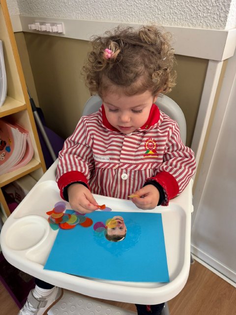 Hemos trabajado el Carnaval a través de murales llenos de color, donde los niños y niñas han podido experimentar con pinturas, texturas y materiales, fomentando la creatividad y la expresión artística. También hemos disfrutado de la mesa de luz, un recurso que despierta la curiosidad y la atención, permitiéndoles explorar colores, formas y contrastes de una manera muy especial.