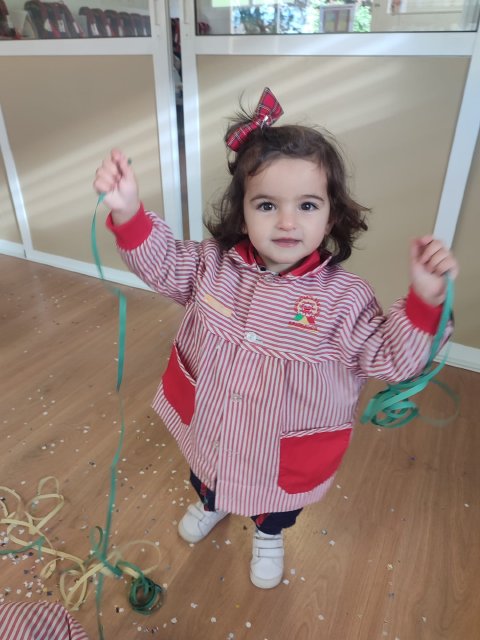 El juego simbólico ha tenido un papel protagonista con los disfraces en el jardín, ofreciendo a los niños y niñas la oportunidad de expresarse libremente, imitar, compartir y disfrutar del movimiento al aire libre. Además, las sesiones con luz negra han llenado el aula de magia, estimulando los sentidos y convirtiendo el aprendizaje en una experiencia sorprendente.