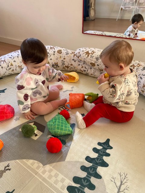 Hemos vivido momentos llenos de descubrimiento, juego y cariño, donde cada sonrisa, gesto y logro ha sido celebrado. Desde explorar texturas, manipular juguetes y disfrutar de canciones hasta sentir la seguridad y el acompañamiento de la rutina diaria, cada día es una aventura única.