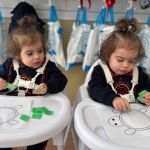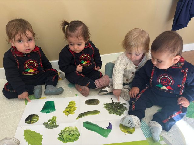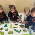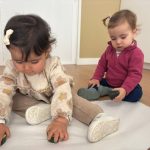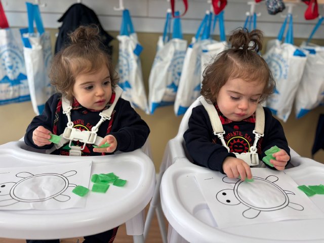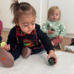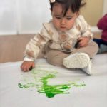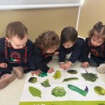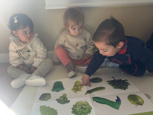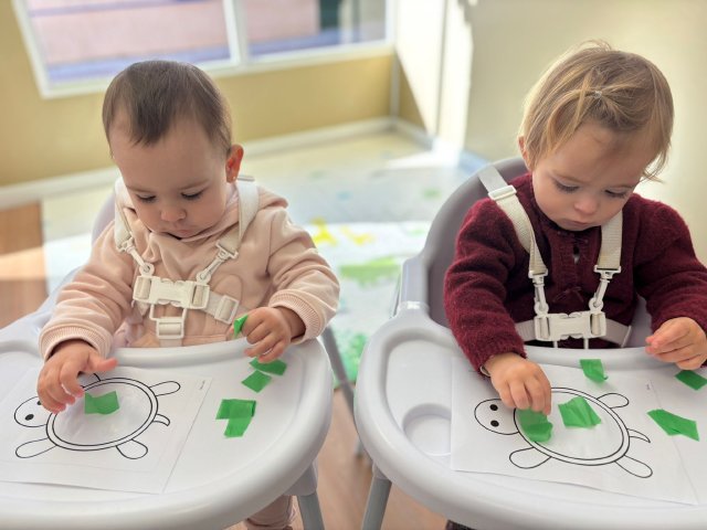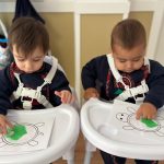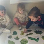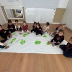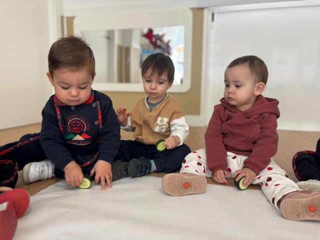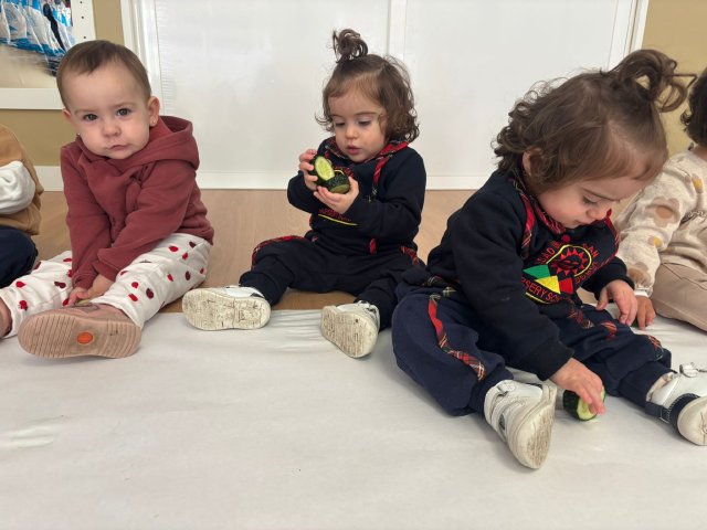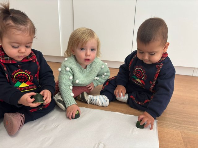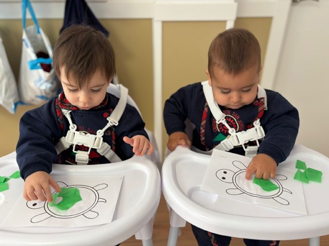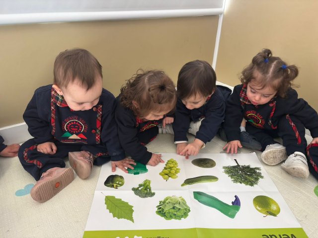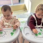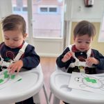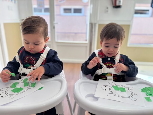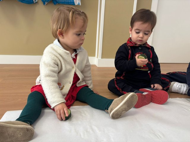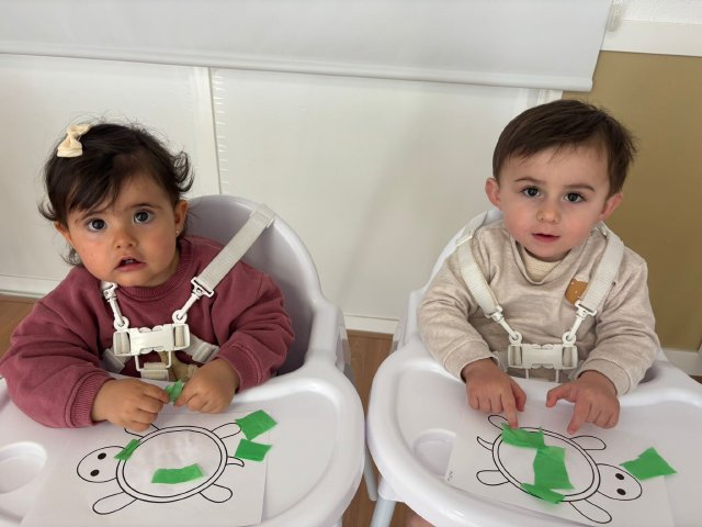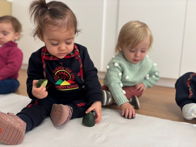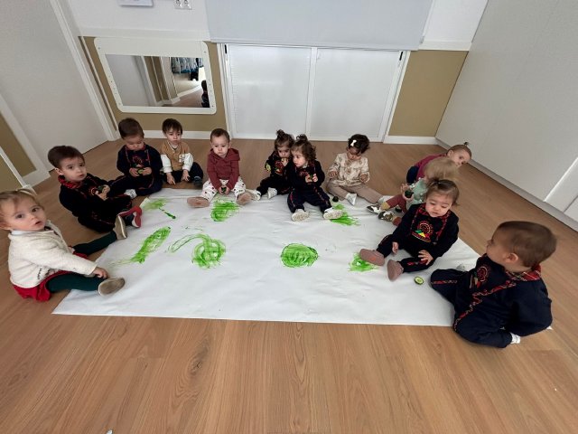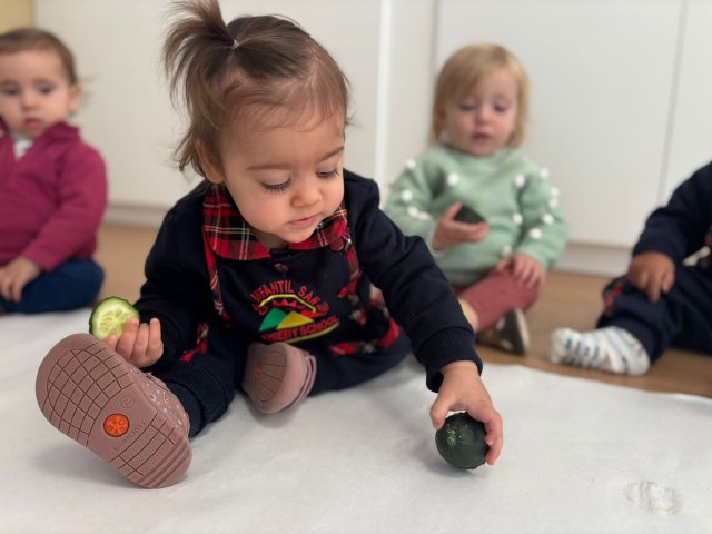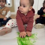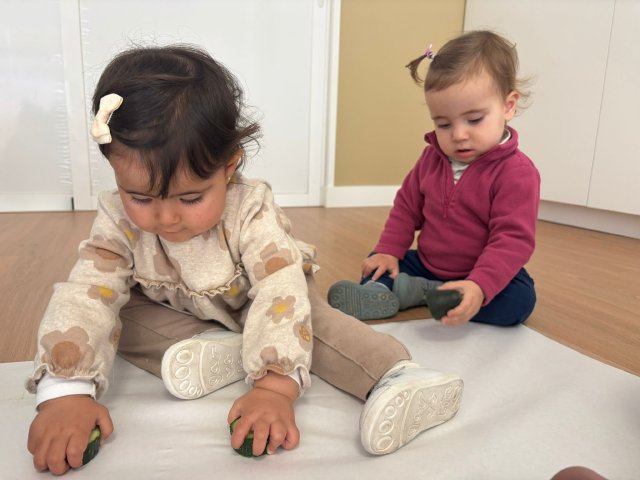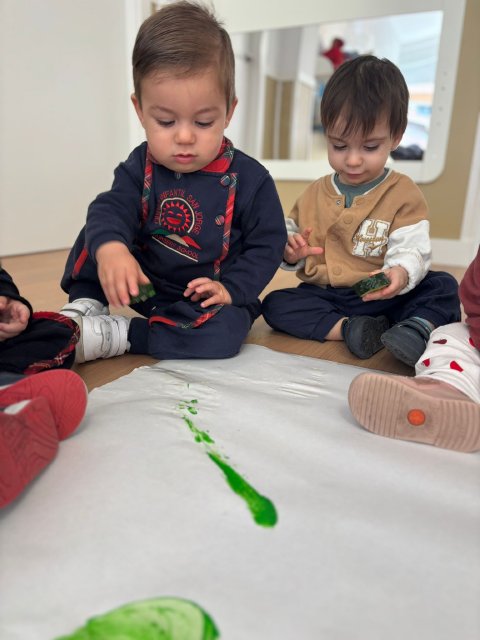 En el aula de Azul 1 hemos realizado una actividad sensorial para descubrir el color verde a través de la estampación con pintura líquida, siempre respetando los ritmos y necesidades de cada bebé.