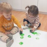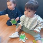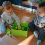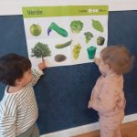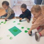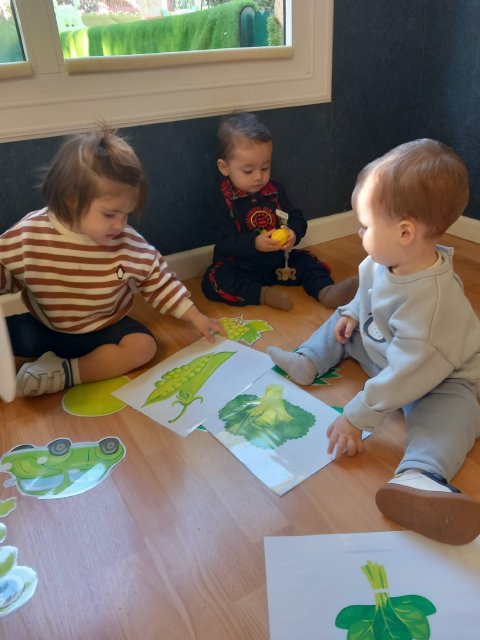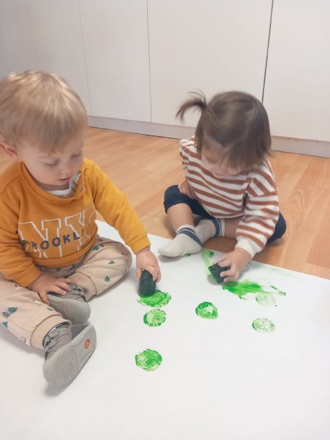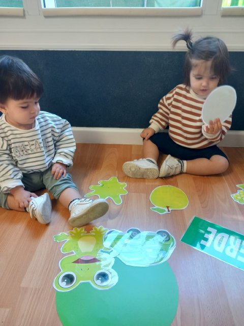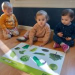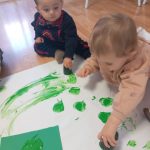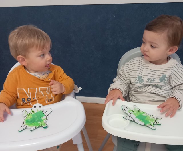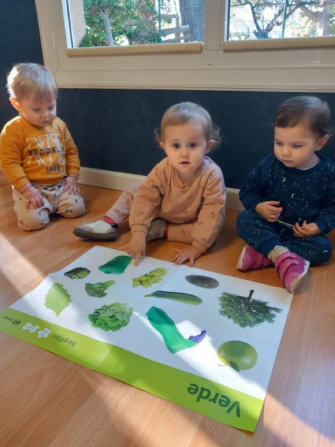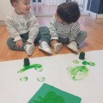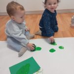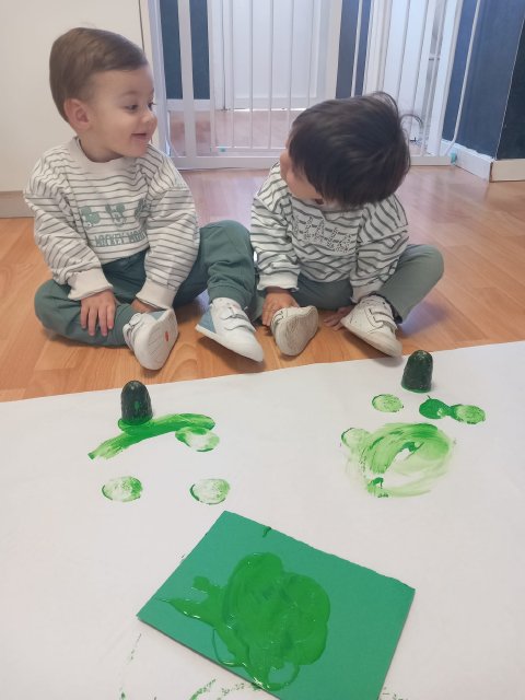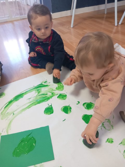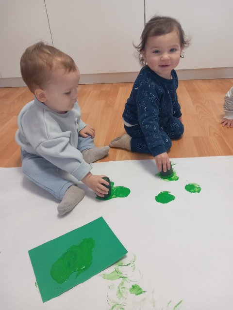 En el aula de Azul 2 hemos realizado una actividad sensorial para descubrir el color verde a través de la estampación con pintura líquida, siempre respetando los ritmos y necesidades de cada bebé.