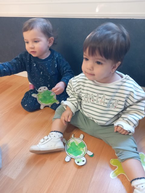 Con ayuda de las seños, los peques han tocado la pintura, observado cómo se extendía sobre el papel y experimentado con sus manos, dejando huellas y marcas libres. El objetivo no era el resultado, sino sentir, explorar y experimentar.