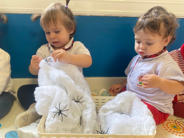 Hemos contado cuentos, cantado canciones en inglés, hecho manualidades terroríficamente divertidas y decorado la clase con murciélagos, fantasmas y calabazas.