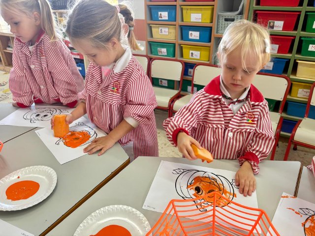 Hemos contado cuentos, cantado canciones en inglés, hecho manualidades terroríficamente divertidas y decorado la clase con murciélagos, fantasmas y calabazas.