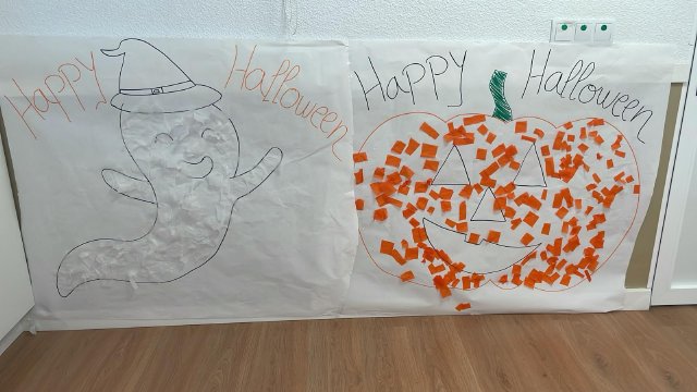 Hemos contado cuentos, cantado canciones en inglés, hecho manualidades terroríficamente divertidas y decorado la clase con murciélagos, fantasmas y calabazas.