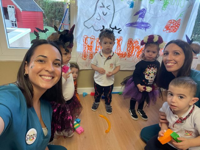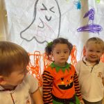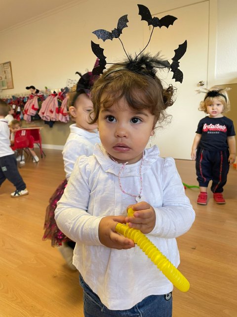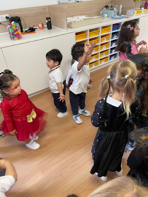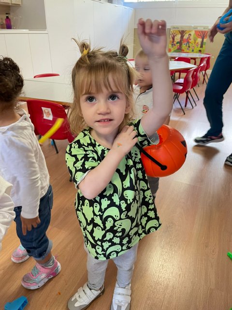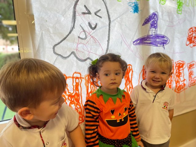 Hemos contado cuentos, cantado canciones en inglés, hecho manualidades terroríficamente divertidas y decorado la clase con murciélagos, fantasmas y calabazas.