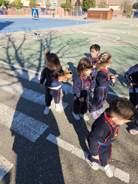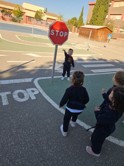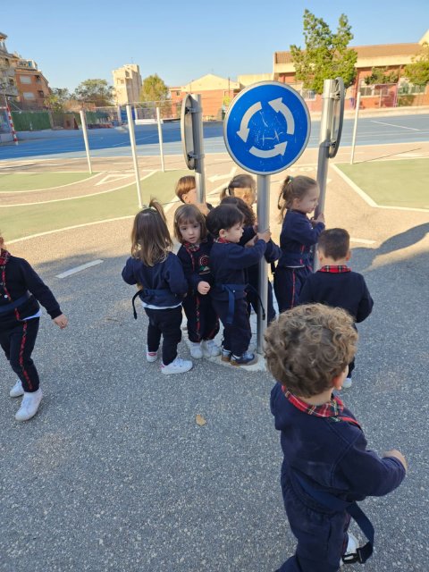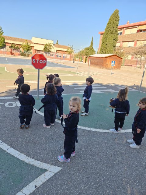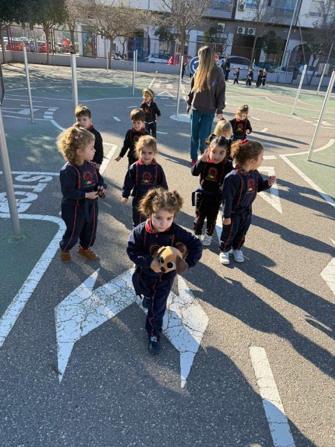 Nuestra primera parada ha sido el parque de educación vial del Colegio Nuevo San Blas, nuestro cole vecino. Allí, entre señales, pasos de peatones y semáforos, hemos aprendido cómo movernos por la calle con seguridad, siempre atentos y con muchas ganas de hacerlo bien. ¡Quién sabe si hoy han nacido futuros peatones ejemplares (y algún que otro policía de tráfico)!