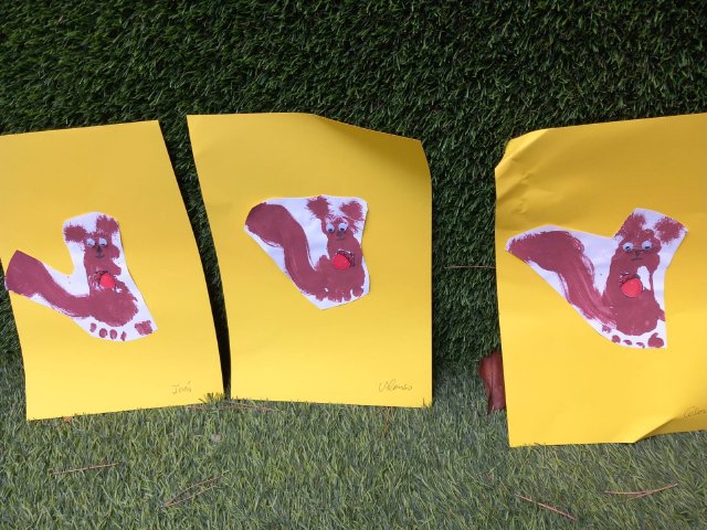 En la clase de Azul 2 seguimos disfrutando del otoño con mucha creatividad. Esta vez hemos transformado la huella del pie de cada niño y niña en una simpática ardilla.