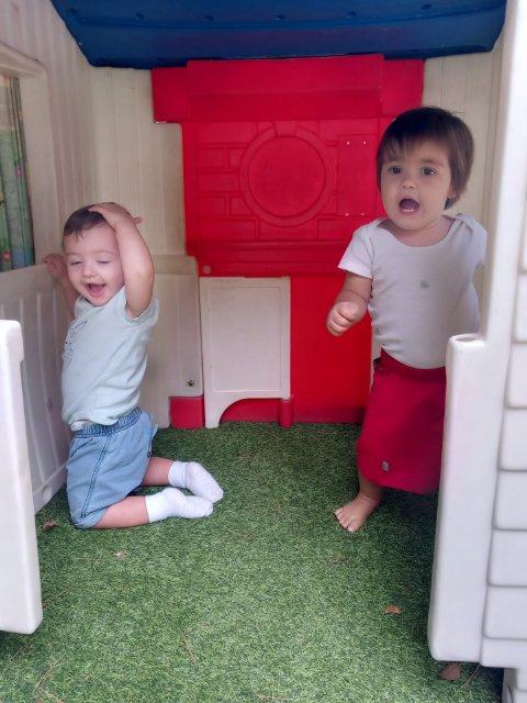 Además, hemos aprovechado estos días soleados para jugar en el patio, recogiendo hojas secas, corriendo y explorando el entorno natural que tanto disfrutan.