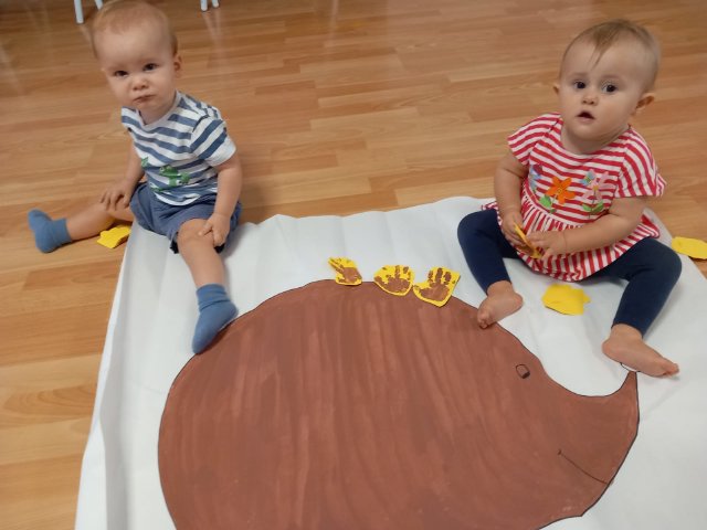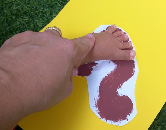Con pintura, pinceles y mucha ilusión, sus pequeños pies se convirtieron en la base perfecta para dar vida a este animal tan característico del bosque otoñal.