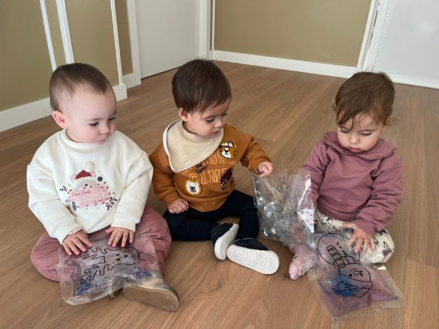 Hemos realizado propuestas sensoriales con elementos propios de estas fechas, talleres creativos para fomentar la expresión artística, canciones y cuentos navideños que han despertado la curiosidad y la imaginación, así como juegos que favorecen la socialización y el disfrute en grupo. Cada actividad ha sido diseñada con cariño para estimular sus sentidos, potenciar la motricidad y reforzar valores como la alegría, el compartir y el compañerismo.